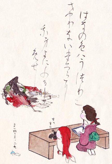 Kishi Chan キシチャン V Twitter 今日は百人一首の日 イラストイメージは小野小町 まだ小町の頃は十二単じゃない 百人一首の日 イラスト